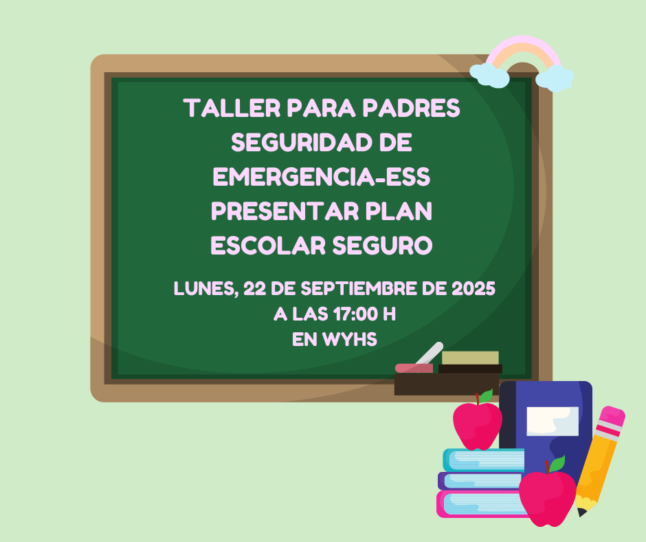 Planifique asistir a nuestra presentación sobre seguridad de emergencia en la escuela/plan de escuela segura. La reunión se llevará a cabo en Zoom a las 5:00 p. m.